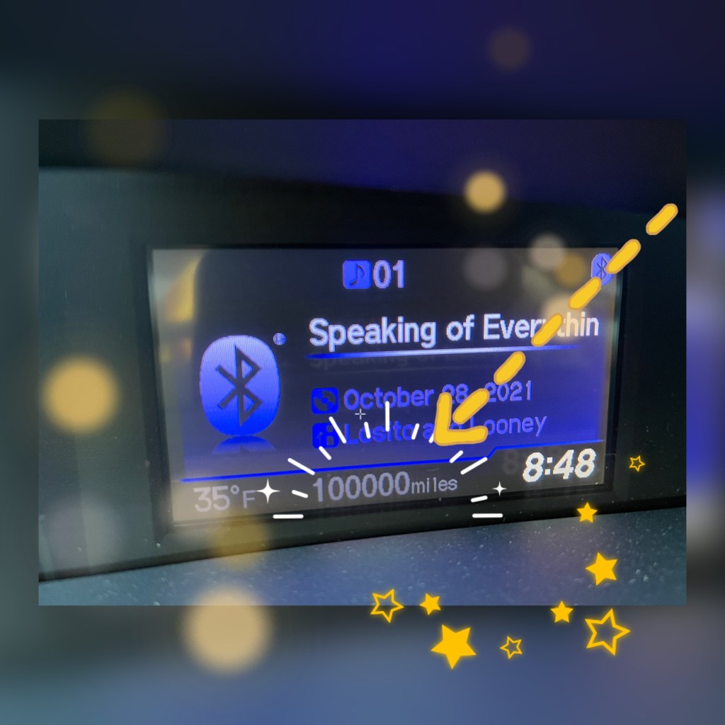 8 years, 2 days and 100,000 miles This morning while buying some milk, the Honda hit a milestone. She has already had her tune up so we are good for another 100,000 lol. Share this: Click to share on Facebook (Opens in new window) Facebook Click to share on WhatsApp (Opens in new window) WhatsApp Click to email a link to a friend (Opens in new window) Email Click to print (Opens in new window) Print Like Loading... Related