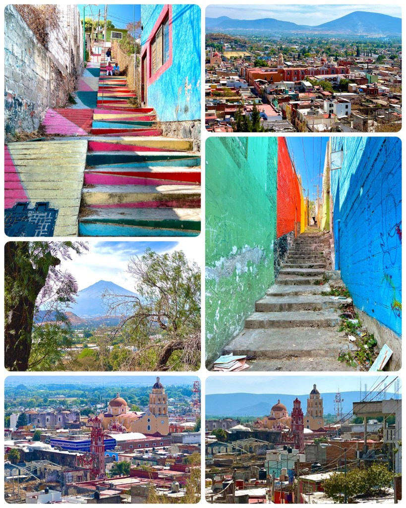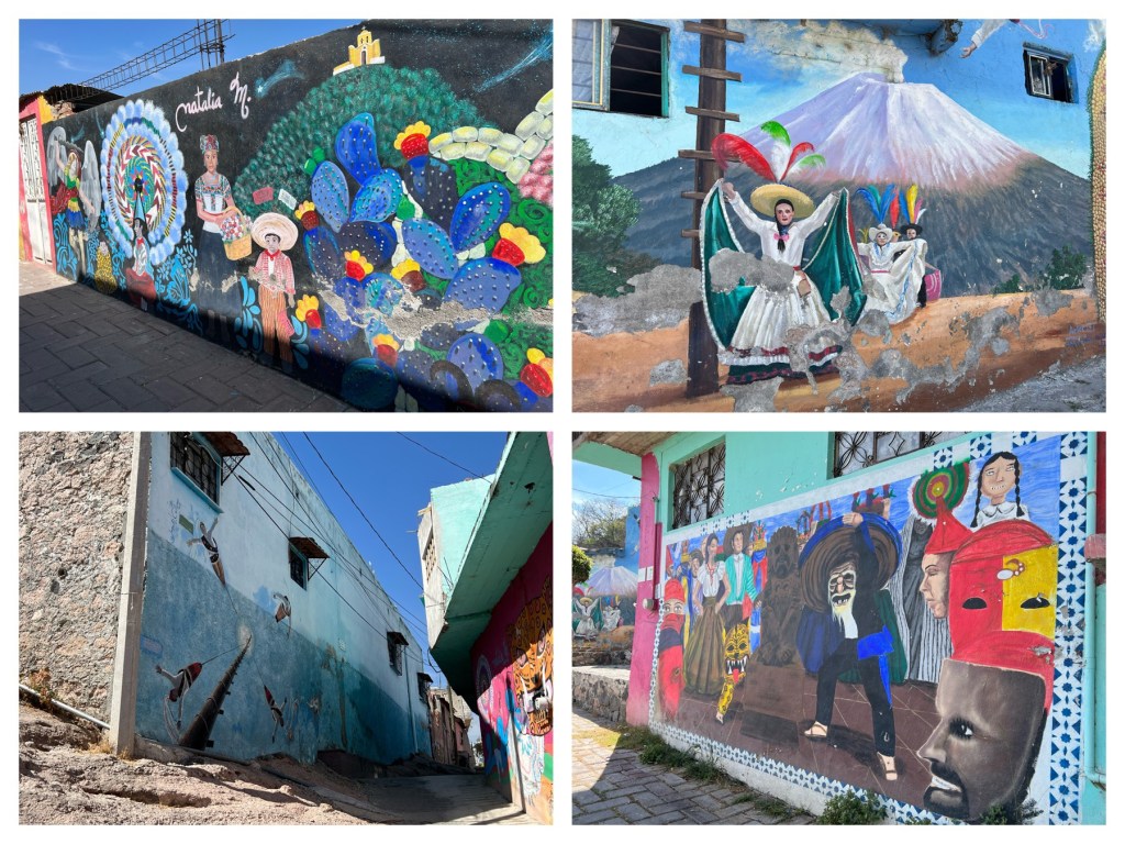 The family decided that we would go to Atlixco today and select flowers for the big day. We took Mom, Maru and Family and Cas and I, with Cas and I riding in the back, which was great fun. Once there we had to hike up the hill and passed through some beautiful streets with color and murals.