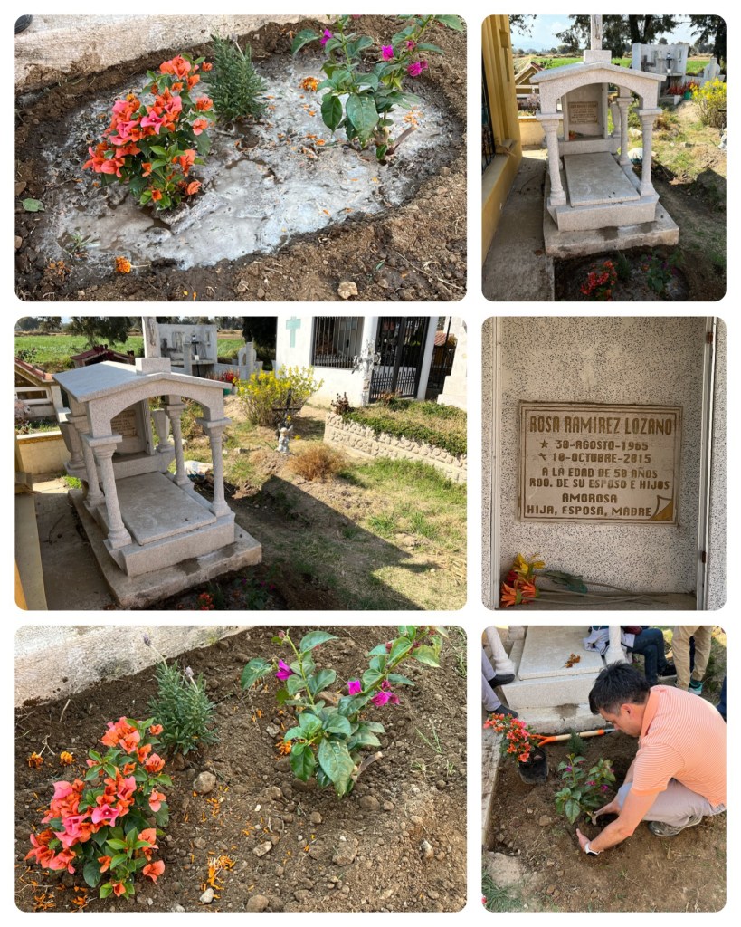 At Rosy’s, we planted three new plants, including roses and a lavender plant. Cas did most of the hard work, and Logan got the water for us. The runoff did not damage Rosy’s site, but someone did take the glass and frame that protected her plaque.