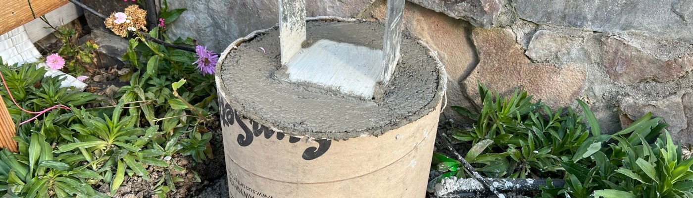 The following day, we got up early and started to dig the holes, and all went well until we hit rocks. It was back-breaking work trying to get them out of the ground, but we finished. We poured all the bags of concrete and set the brackets, and we will wait three days before we add the posts and secure them. On to the next step.