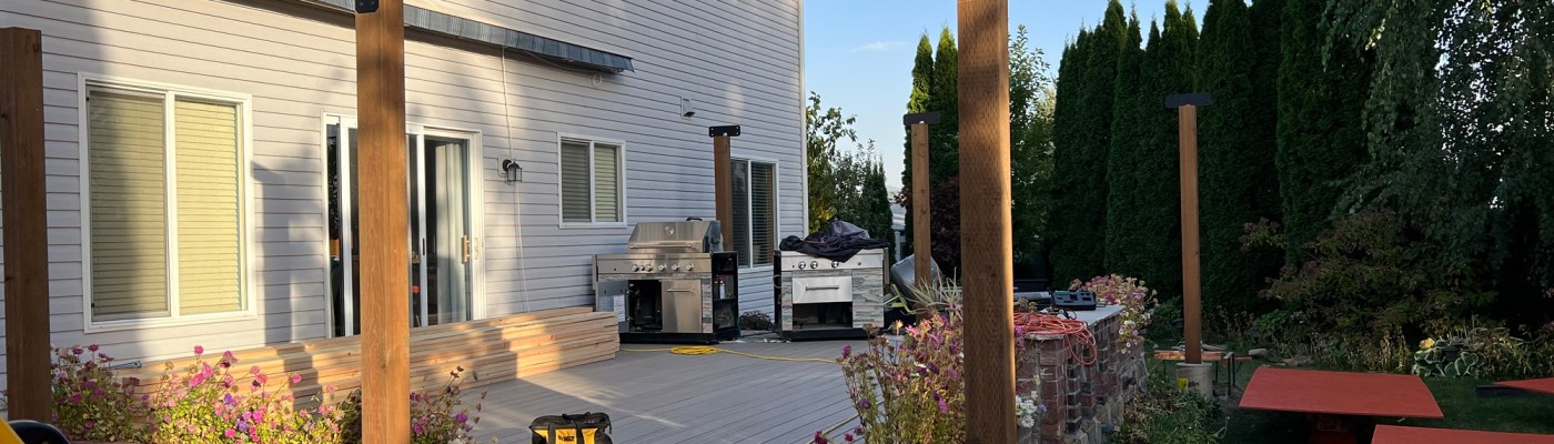 By the Sunday of our vacation, we had dug the holes for the posts, poured the concrete, painted all the plywood needed to support the roof, and bought most of the wood and materials that we needed and it was finally time to start building.