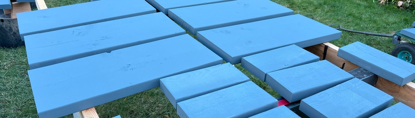 As Cas continued to cut the hundreds of individual pieces, I started to paint them as fast as I could go keep up, but there were lots of pieces that needed painting on all four sides.