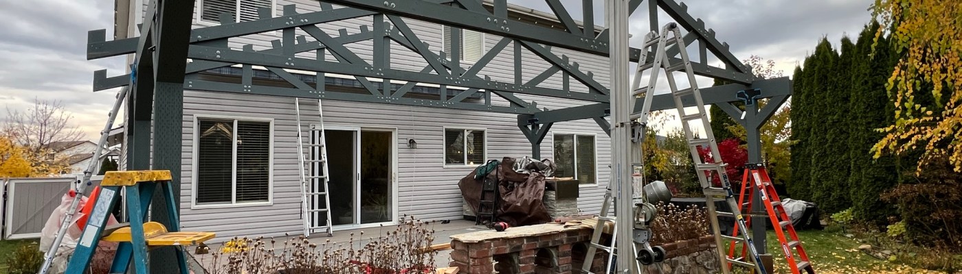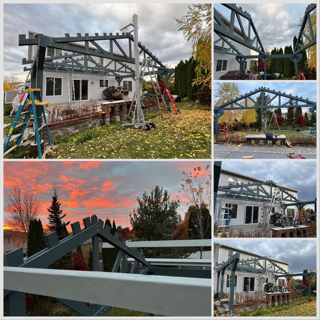 One day, while having lunch at work, we came up with an idea to rent something that we could lift up the three trusts. We landed on a material lift. We found one we could rent for the day at $80, right down the street. We rented it for our next day off together, election day. We arrived right at opening so we could get a full day’s use out of the lift, and it made it work for us.