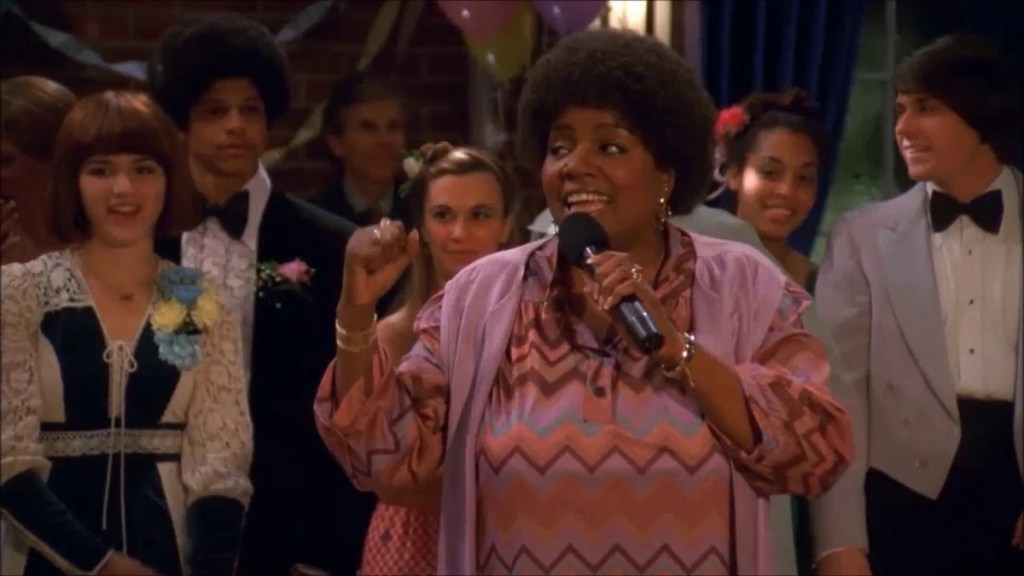 Weeks later, she would appear in Prom Date, episode 19. Gloria Gaynor guest stars as Mrs. Clark and sings “I Will Survive” for Fez.