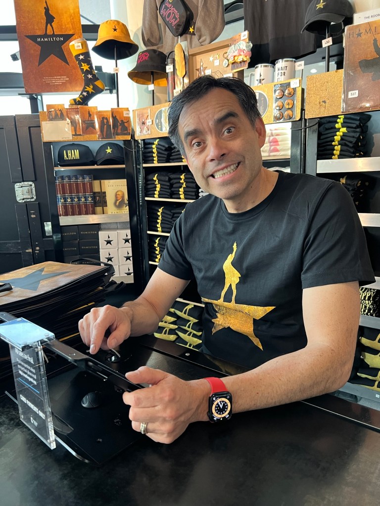 Over the past two weeks, we had the opportunity to sell merchandise for the touring production of Hamilton, and we both loved it. It all started when I received an email asking if we wanted to help with the show heading to Spokane. My first thought was how they even knew who I was. And the second thought was YES! I asked Castor if he wanted to do it, and he was all in, so I emailed the group back, coordinated with work, and waited to find out if they needed us.