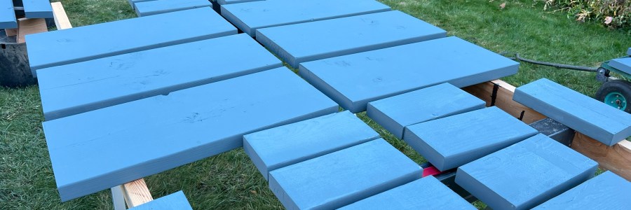 With working and rain off and on all week, we were slowed in our mission but found plenty to do. When he could Cas would continue to make his cuts for the other trusts, and I continued to paint of stain the boards as needed so once we had time, we could go, go, go!… Read More Prep week