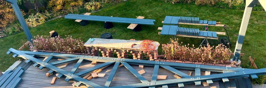 With the end of our vacation approaching, we had to push to get the big steps completed before we returned to work. We were able to add both the support beams today, and as Cas secured them to the top of the posts, I started to paint them in the grey color we had selected.… Read More Supports beams go up